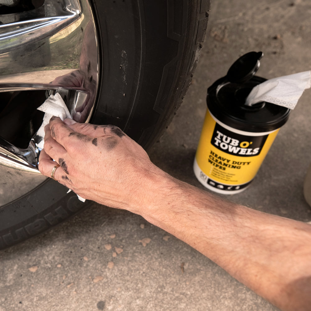 Tub O’ Towels industrial-strength wipes are specially formulated to be tough on grease, tar, ink, paint, dirt, grime and many other messes. While designed to clean thousands of surfaces including your auto interior and exterior, leather, vinyl, metal, walls, floors, outdoor furniture and so much more, these wipes are excellent at cleaning your hands. Thanks to their ability to do what other wipes can’t, not a day goes by where we don’t hear of another way Tub O’ Towels saved the day!
